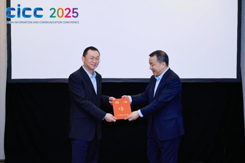 中国通信学会文剑副秘书长(右)为第二届专委会主任委员颁发聘书