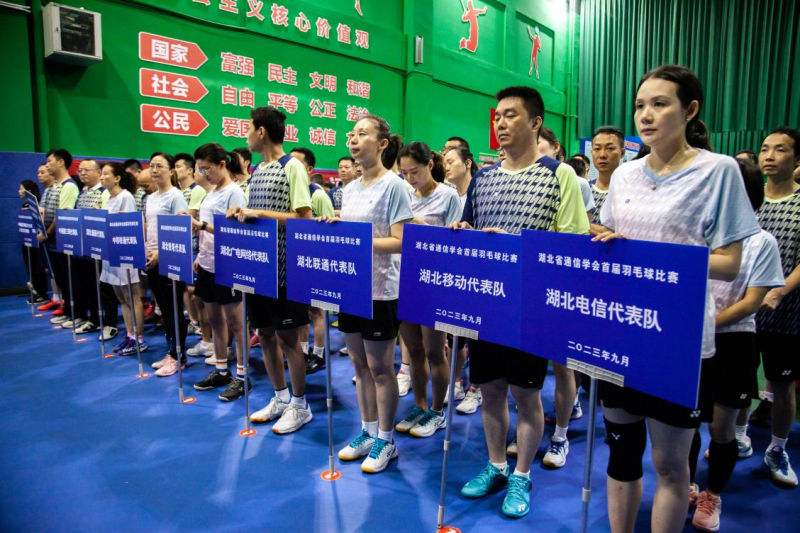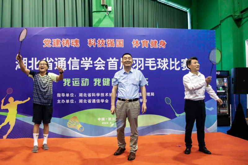 2023年9月1日上午,由湖北省科学技术协会、湖北省通信管理局指导,湖北省通信学会、武汉市通信学会主办的湖北省通信学会首届羽毛球赛在武汉塔子湖全民健身中心启幕。此次比赛以“党建铸魂 科技强国 体育健身”为主题,倡导“我运动 我健康 我快乐”。省科协正厅长级干部陈兴荣、省通信管理局机关党委书记易武、湖北省通信学会理事长陈男健、武汉通信学会理事长高鹏军、省电信资深副总裁杨峰、省移动副总经理陶华等领导出席了开幕式。湖北省通信学会秘书长张岧主持了开幕式。