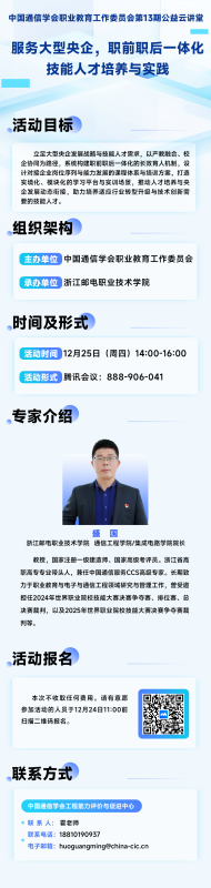 12月25日活动预告丨中国通信学会职业教育工作委员会第13期公益云讲堂服务大型央企,职前职后一体化技能人才培养与实践