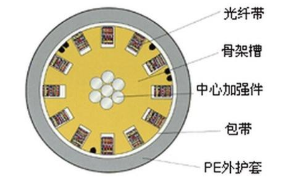 中心管式光缆的结构如图6所示,缆内光纤带一般为12芯、24芯。中心管式光缆具备重量轻、直径小、成本低的特点,如果光缆的芯数不大,应该是工程中比较好的选择。由于中心管式光缆的光纤余长较难控制,在极端温度下可能会导致缆内光纤故障,所以,无论是光纤带还是分立光纤结构,CMCC都不太爱采用;其实,中心管式光缆的温度适应性没那么差,完全能满足大多数场景的使用要求。