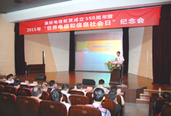 “世界电信和信息社会日”,今年恰逢国际电联150周年华诞,国际电联将今年的“世界电信和信息社会日”主题确立为“电信与信息通信技术:创新的驱动力”,旨在突出电信与信息技术在经济社会发展中的战略地位,呼吁全社会行动起来共同推进创新发展。5月17日,我会在武汉科技馆科学会堂举办了国际电信联盟成立150周年暨2015年“世界电信和信息社会日”纪念会。省通信管理局袁瑞青局长应邀出席会议并做了重要讲话。省通信管理局熊觉非副局长、省科协曾宪计副主席、省专用局刘国强副局长、省经信委蔡小勇处长以及各大运营企业的领导出席了会议。全省信息通信界、高校、科研教学、施工设计、运营维护、设备制造、通信建设等单位的代表以及新闻媒体宣传部门记者200余人参加会议。