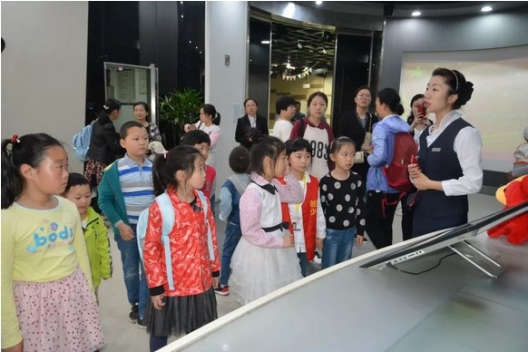 小朋友们排列整齐,积极的在触屏上体验电子签名,名字立即出现在大屏上,并将永远留在信息馆访客签名录中。