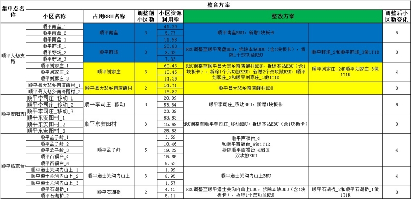 低效能站点的整改方面,对于对超闲基站,以调为主,采用调挂高、变方位、压带宽、增功率等方式有效增加覆盖,提升容量;对零流量基站,以搬为主纳入新建工程减少增投资。BBU整合方面:坚持集中放置的原则,对于低流量,低利用率的小区通过BBU合并实现资源节省。RRU方面:通过利用率数据,流量数据,覆盖场景对RRU进行功分或降带宽等方法节省投资。