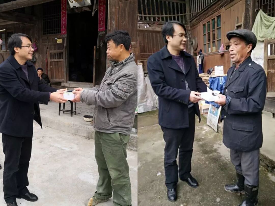 (图为洪江市分公司帮扶责任人为贫困户免费送去4G手机)