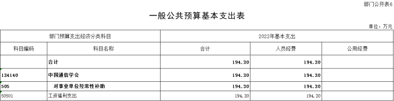 六、关于中国通信学会2022年一般公共预算基本支出表的说明
