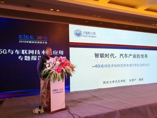 同济大学汽车学院教授,汽车安全技术研究所所长朱西产教授,作了《5G通讯技术如何改变未来汽车社会的出行》报告。