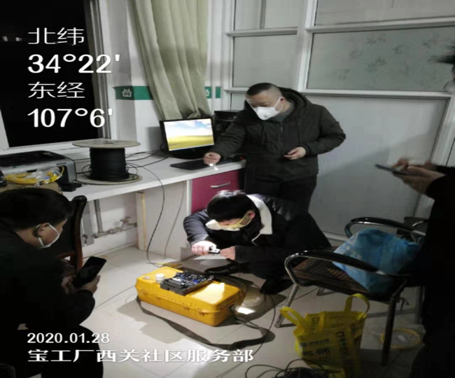 1月28日下午16时,宝鸡分公司接到金台区防疫中心申请开通金台医院至西关社区卫生所光纤专线需求。在西关社区卫生所没有光纤资源情况下,维护人员与政企支撑经理相互配合,克服重重困难,快速布放光缆、固定光缆、熔接、放尾纤、调测光猫。历时5个小时,为用户开通了业务。