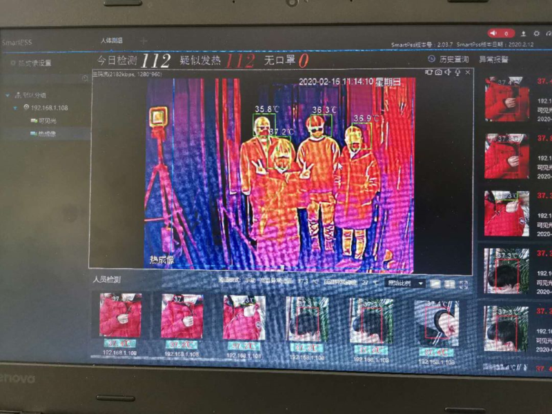 疫情防控期间,北京移动与各级卫健委、疾控中心及各社区卫生服务中心保持紧密联系,利用信息化手段提升疫情防控能力。2月11日,北京移动联合北京融昱信息技术有限公司,为朝阳区亚运村社区卫生服务中心部署红外体温监测系统。该系统由一台双目光学热成像仪+黑体组成,安装在通道入口,能够捕捉所有进入通道的人员头像,并能够识别所有人员的实时体温,误差仅为±0.1℃,较好的实现人体温度识别,协助该卫生服务中心提高疫情防控效率。