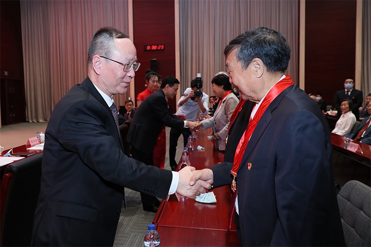 会上,王一鸣同志、肖亚庆同志以及部党组成员、总师向老党员代表颁发“光荣在党50年”纪念章,为部直属机关优秀共产党员和优秀党务工作者代表以及先进基层党组织颁发奖牌证书。这枚沉甸甸的“光荣在党50年”纪念章既是对老党员的最高礼赞,又是对青年党员的殷切期盼和续写新篇章的强大动力。青丝变白发,不变的是爱党敬党的初心,坚守的是忠党信党的赤诚,佩戴上纪念章,老党员们激动万分、满怀自豪。“光荣在党50年”纪念章获得者代表徐永革、优秀共产党员代表刘傲、优秀党务工作者代表栾卉馨作大会交流发言。