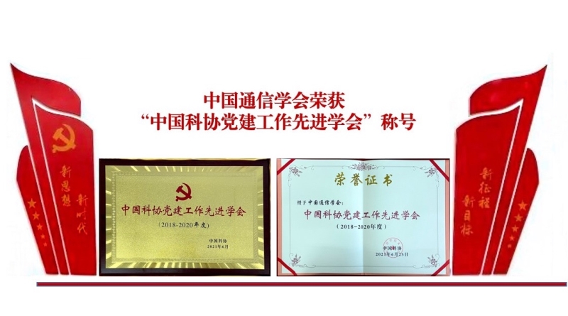 为庆祝中国共产党成立100周年,深入开展党史学习教育,中国科协组织开展了“中国科协党建工作先进学会”评选表彰工作,经申报推荐、评选、公示,中国科协党组授予20家学会“中国科协党建工作先进学会”荣誉称号,中国通信学会荣获中国科协“党建工作先进学会”荣誉。