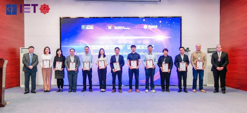 会上还举行了国际注册工程师证书颁发仪式。欧阳武和IanMercer,为来自中国移动的侯士彦、付雷,中国联通的王宏芳、胡博,中国通建的李全法,中兴通讯的唐文斌、韩素琴,信通院的赵润晶、龚正,北京市轨道交通公司的沈强,石家庄邮电职业技术学院的孙青华颁证。