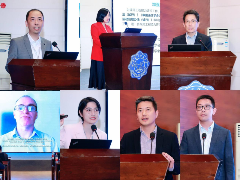 西安电子科技大学通信工程学院副院长顾华玺教授作《信息通信工程类国际化人才培养实践-以西安电子科技大学与英国赫瑞-瓦特大学合作举办的通信工程专业本科双学位项目为例》主题演讲;IET全球运营总监Ian Mercer作《国际工程认证与工程师能力培养》主题演讲;中国通信学会工程能力评价与促进中心主任吴卓平作《中国通信学会工程师队伍建设创新探索》主题演讲;中国工程师联合体工程能力评价考官、IET特许工程师、中国通信学会通信建设专委会副主任委员李全法作《构建与国际实质等效的工程能力评价体系,推动工程师国际互认》主题演讲;IET认证及奖项负责人Daniel Canty作《英国工程教育认证概述》主题演讲;新大陆科技集团有限公司产教融合中心总监赖靖靖作《产教融合背景下数字化工程师培养模式的实践与探索》主题演讲;新华三技术有限公司产业教育开发中心主任汤徽作《创新引领 产学研用-新华三关于工程教育的思考与实践》主题演讲;中信科移动通信技术股份有限公司教育业务总监孙中亮作《企业数字化转型重塑工程人才培养新格局》主题演讲。专家们围绕经济社会数字化转型对工程师培养的新需求、工程师职业化、国际化水平提升培养实践等主题进行了精彩分享。