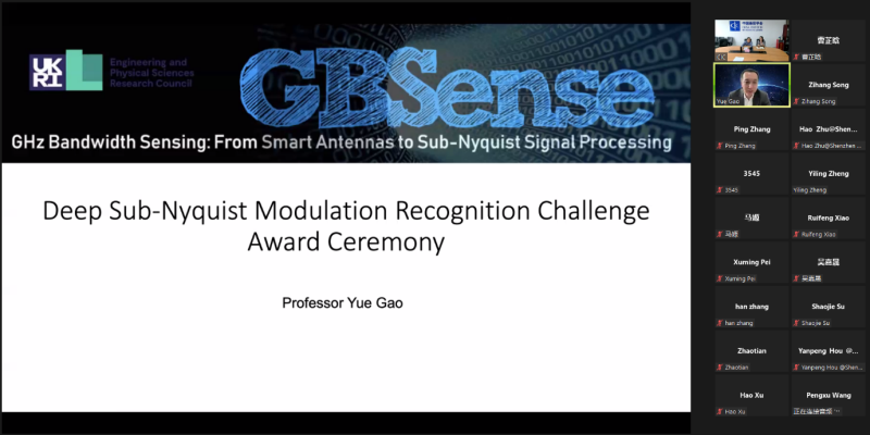 北京时间2023年5月12日,由中国通信学会主办,英国工作委员会联合英国工程和自然科学研究委员会(EPSRC)、英国萨里大学和中国复旦大学承办的“基于人工智能的信号识别技术挑战赛 (GBSense Challenge 2022)”颁奖仪式在线上举行,颁奖典礼由英国工委主任委员高跃教授主持,中国通信学会文剑副秘书长出席并宣读了获奖名单。本次大赛旨在发掘并推广6G无线通信领域的智能频谱管理技术,以应对未来频谱资源日益紧张的挑战。大赛吸引了来自全球的专家学者和技术团队参加,共同为6G无线通信技术的发展做出贡献。
