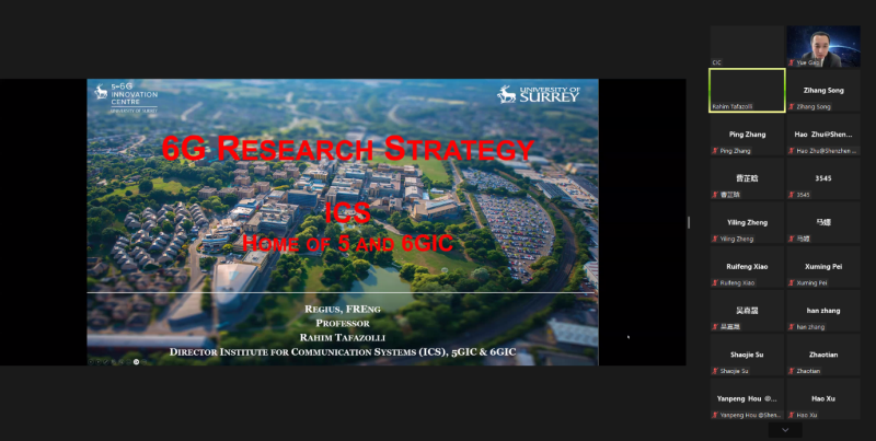 颁奖仪式结束之后,萨里大学的Rahim Tafazolli教授以“6G前沿技术”为主题进行了分享,中国工程院院士、北京邮电大学张平教授就“语义通信”发表主题演讲。随后,获得比赛前六名的团队分别对自己的参赛作品进行了展示。