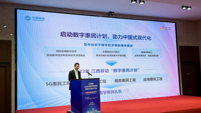 中国移动江西公司副总经理郑少波在“江西省2023世界电信和信息社会日大会”上发布数字惠民计划