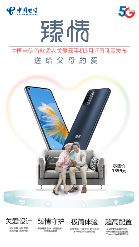 中国电信江西公司充分洞察老人市场空间、广泛开展市场需求调研之后,精心进行系统调优和适老应用开发,成功打造了“臻情”手机,不仅方便了老人在手机端的看、听、用,还满足了子女对老人进行亲情守护等需求,旨在让天下父母再也没有难用的手机。