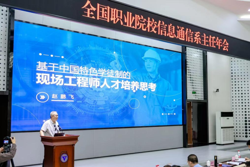 广东建设职业技术学院校长、教育部职业院校中国特色学徒制教学指导委员会主任委员、国务院政府特殊津贴专家、广东省人民政府参事赵鹏飞作《基于中国特色学徒制的现场工程师人才培养思考》主题报告。