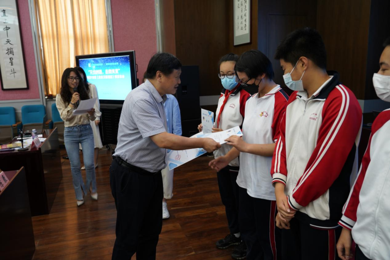 活动现场,欧阳武、梁海滨、付方明共同为现场同学颁发活动证书,鼓励同学们积极参与科普活动。