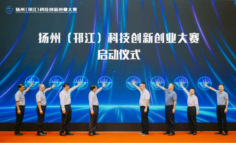 启动仪式现场,扬州市委常委副市长潘学元、邗江区人民政府区长王庆伟等领导登台,共同开启本次创新创业大赛。