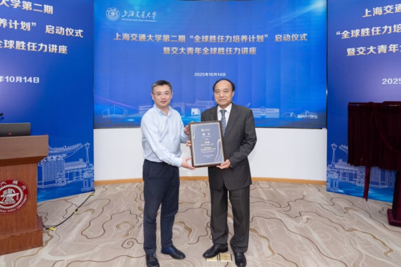 上海交通大学向赵厚麟先生颁发了“学生全球胜任力培养计划”导师聘书。