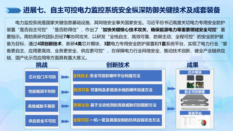 进展七:自主可控电力监控系统安全纵深防御关键技术及成套装备