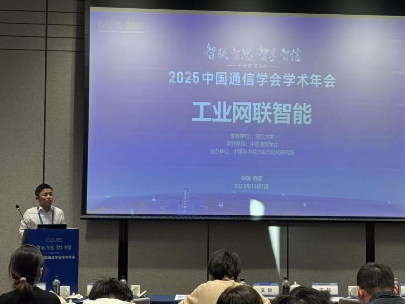 2025年12月7日下午,2025中国通信学会学术年会“工业网联智能”专题会议在西安举行。会议由浙江大学与中国科学院沈阳自动化研究所共同举办,浙江大学舒元超教授、中国科学院沈阳自动化研究所许驰研究员担任会议主席。中国通信学会副秘书长文剑出席开幕式并致辞。来自多家顶尖科研机构与高校的权威专家与会,共同探讨了工业网联智能领域从基础理论到行业应用的最新进展。